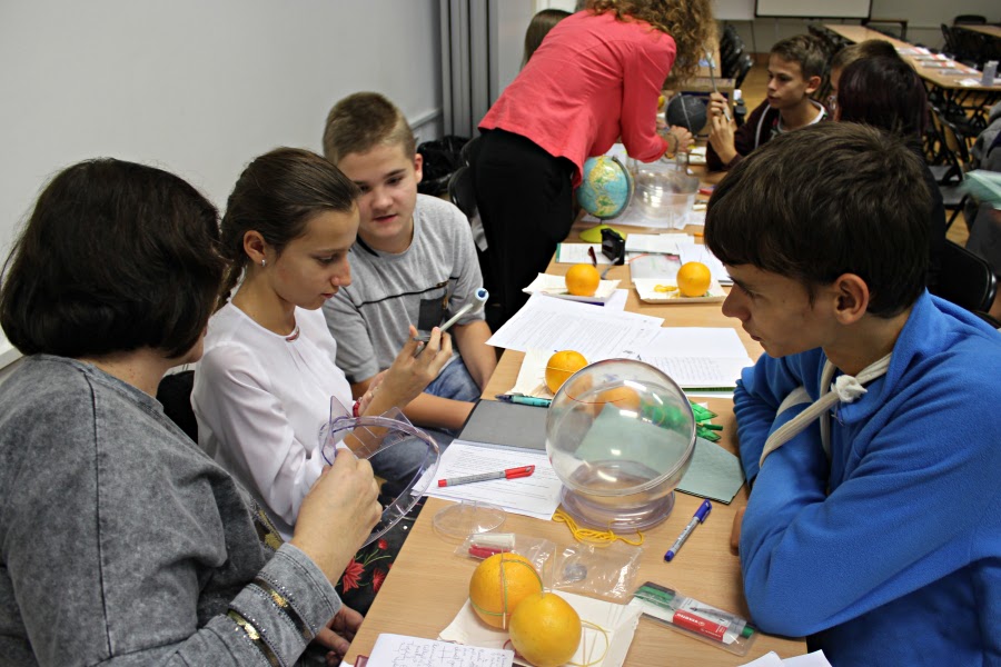 Otóż zajęcia dla 4-osobowych grup uczniów i ich nauczycieli z siedmiu gimnazjów z Bielska-Białej i okolic były prowadzone przez dr Annę Rybak z UwB i prof. Istvána Lenárta z EötvösLoránd University w Budapeszcie. Warsztaty prowadzone były metodą porównawczą, tj. treści z geometrii sferycznej były porównywane z odpowiednimi treściami z geometrii na płaszczyźnie, znanymi uczniom z lekcji matematyki. Uczniowie, prowadząc własną pracę badawczą z wykorzystaniem różnorodnych środków dydaktycznych odkrywali nową dla nich wiedzę. Cały czas odpowiadali na kluczowe pytanie naukowca: Dlaczego?