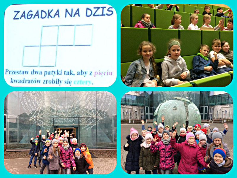 13 grudnia 2016 roku odwiedzili nas uczniowie klas szóstych ze Szkoły Podstawowej z Oddziałami Integracyjnymi im. ks. Jana Twardowskiego w Turośli. Uczniowie uczestniczyli w warsztatach poświęconych odkrywaniu własności figur geometrycznych na powierzchni zakrzywionej. Przekonali się, że posługując się globusem można uczyć się matematyki, a konstrukcje geometryczne można wykonywać nie tylko na płaszczyźnie. Właśnie wykonując takie konstrukcje i dokonując odpowiednich pomiarów odkryli, że suma kątów wewnętrznych w trójkącie sferycznym nie jest równa 180 stopni. Na globusie odkryli trójkąt o trzech kątach prostych, a na pomarańczy - dwukąt! Pani Sylwia Grala, ich nauczycielka matematyki, tak skomentowała zajęcia: "Uczniowie wspominali i jeszcze dzisiaj opowiadali, jakich odkryć dokonali na kreatywnej lekcji. Posługiwali się nawet właściwą terminologią. Myślę, że lekcja niektórych uczniów bardzo pozytywnie zainspirowała."