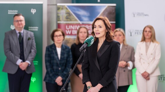 W trakcie spotkania poinformowała, że Uniwersytet w Białymstoku w ramach Podlaskiego Festiwalu Nauki i Sztuki 2026 przygotował ponad 100 wydarzeń.