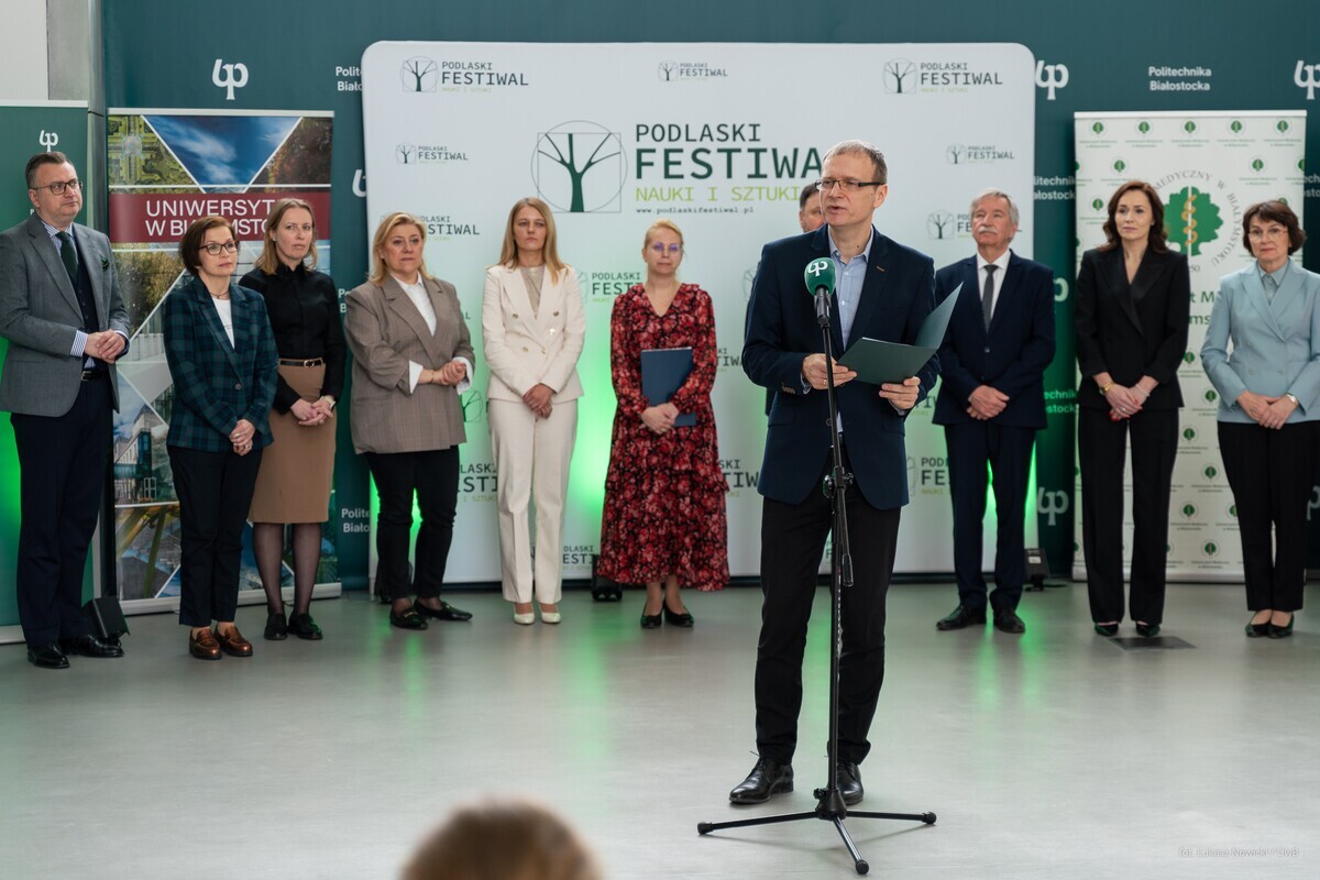 W środę, 15 kwietnia 2026 r. w siedzibie Politechniki Białostockiej, która w tym roku jest koordynatorem głównym Festiwalu, odbyła się konferencja prasowa dotycząca tegorocznej edycji. Uniwersytet reprezentowała dr hab. Agnieszka Piekutowska, prof. UwB prorektor uczelni ds. nauki i współpracy międzynarodowej.