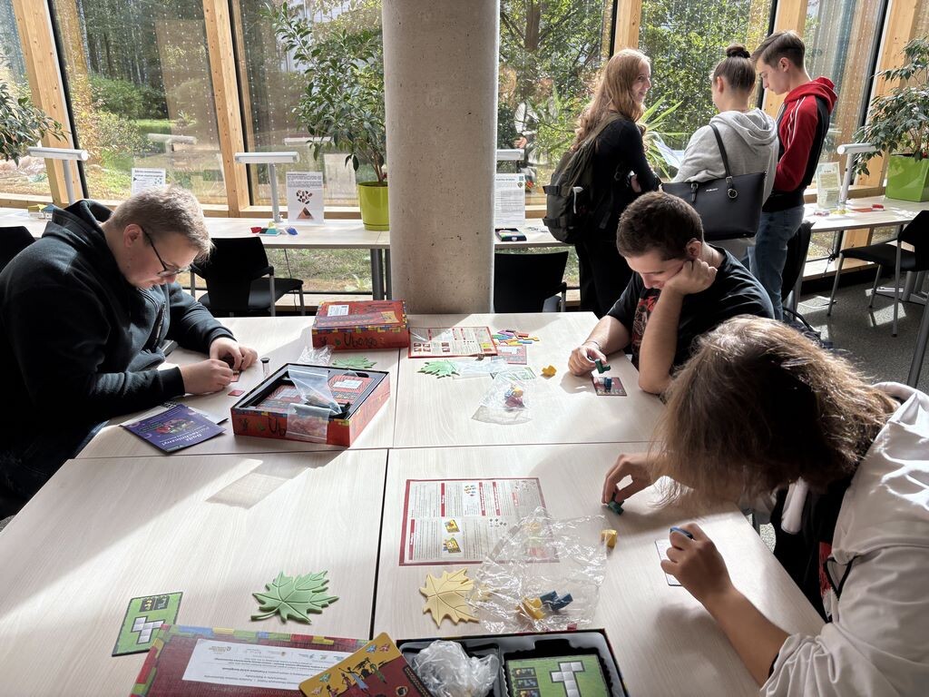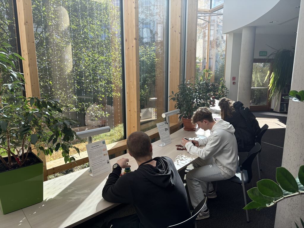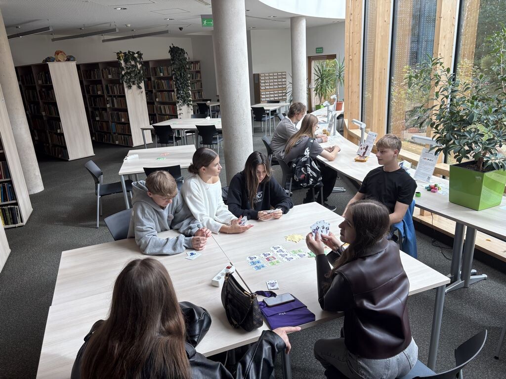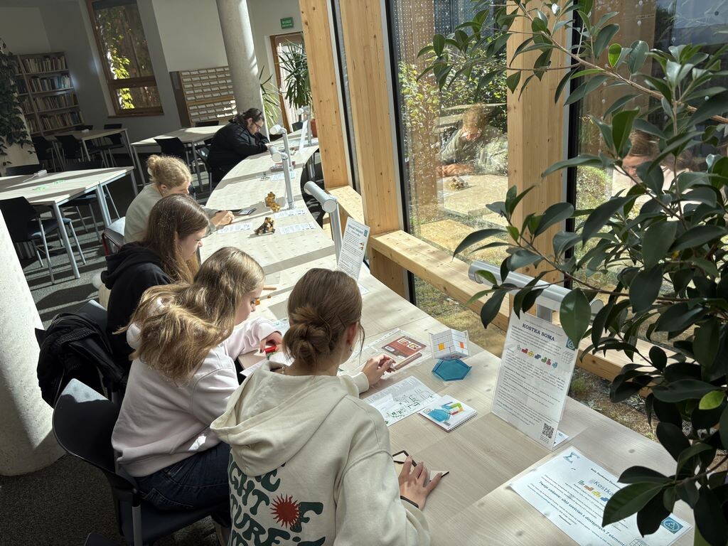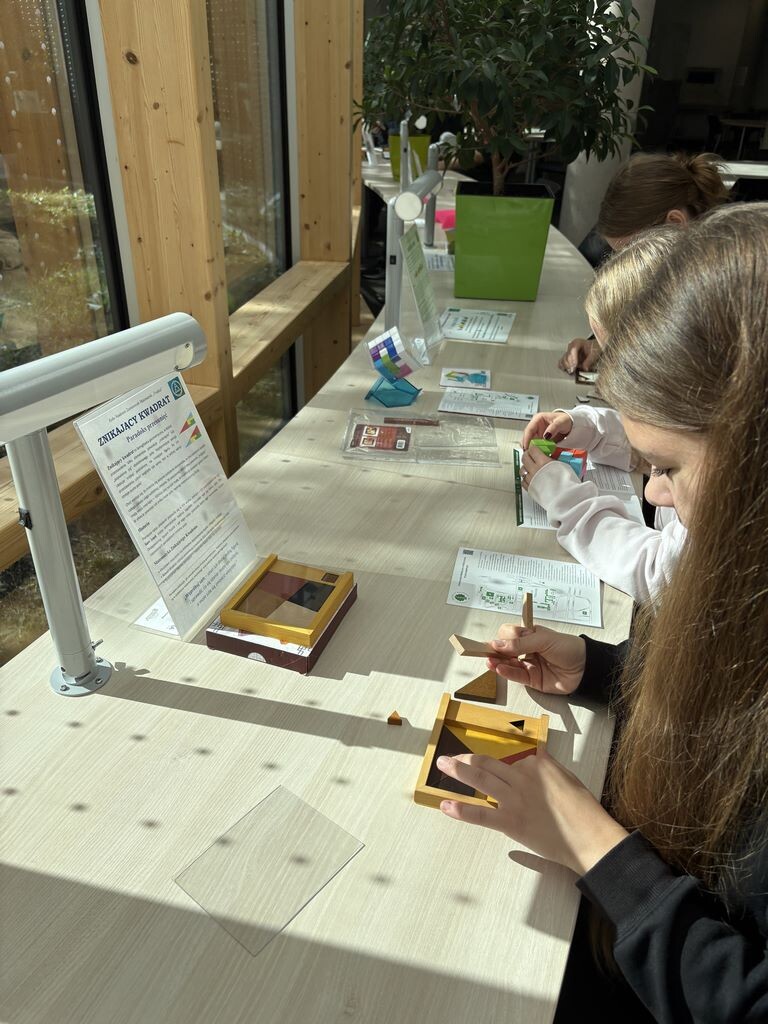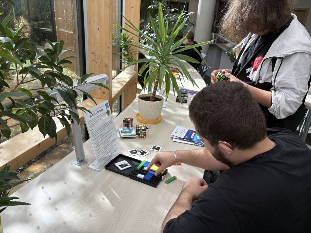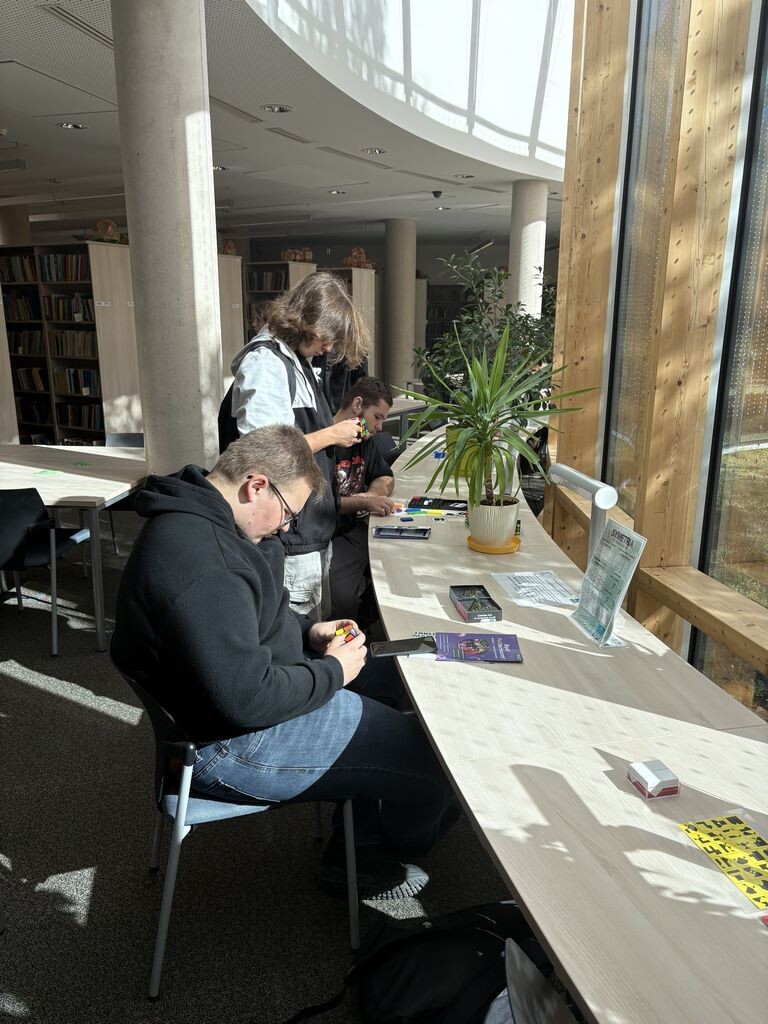 Maturzyści chętnie korzystali również ze Strefy Łamigłówek i Strefy Gier dostępnych w Bibliotece Matematycznej, które zostały stworzone przez Koło Naukowe Fraktal w ramach projektu „Z Fraktalem wśród łamigłówek” z programu Młodzieżowe Podlaskie Lokalnie w semestrze letnim roku akademickiego 2024/2025.