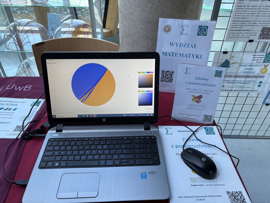 Dużym zainteresowaniem cieszyła się także „Zabawa z powierzchniami” – przy użyciu programu Surfer uczestnicy mogli wpisać swoje imię i zobaczyć, jaka powierzchnia matematyczna powstanie.