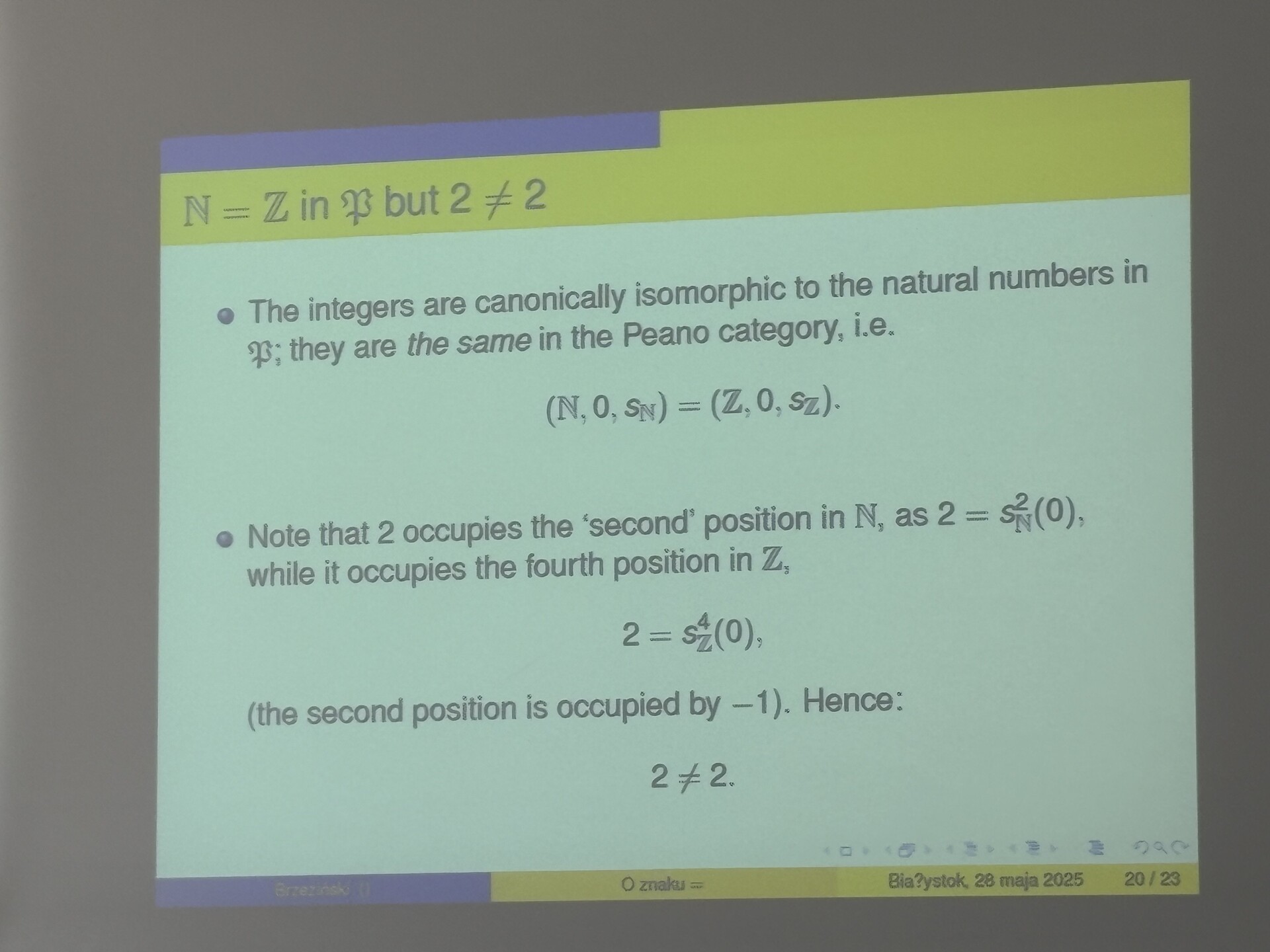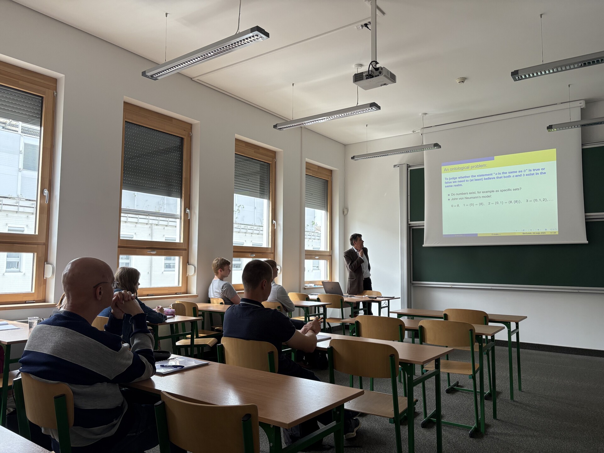 Podczas spotkania uczestnicy mieli okazję spojrzeć na znak równości z perspektywy teorii kategorii i zastanowić się, co właściwie oznacza, że dwa obiekty są sobie równe – czy zawsze 2 = 2 i czy „=” zawsze znaczy to samo.