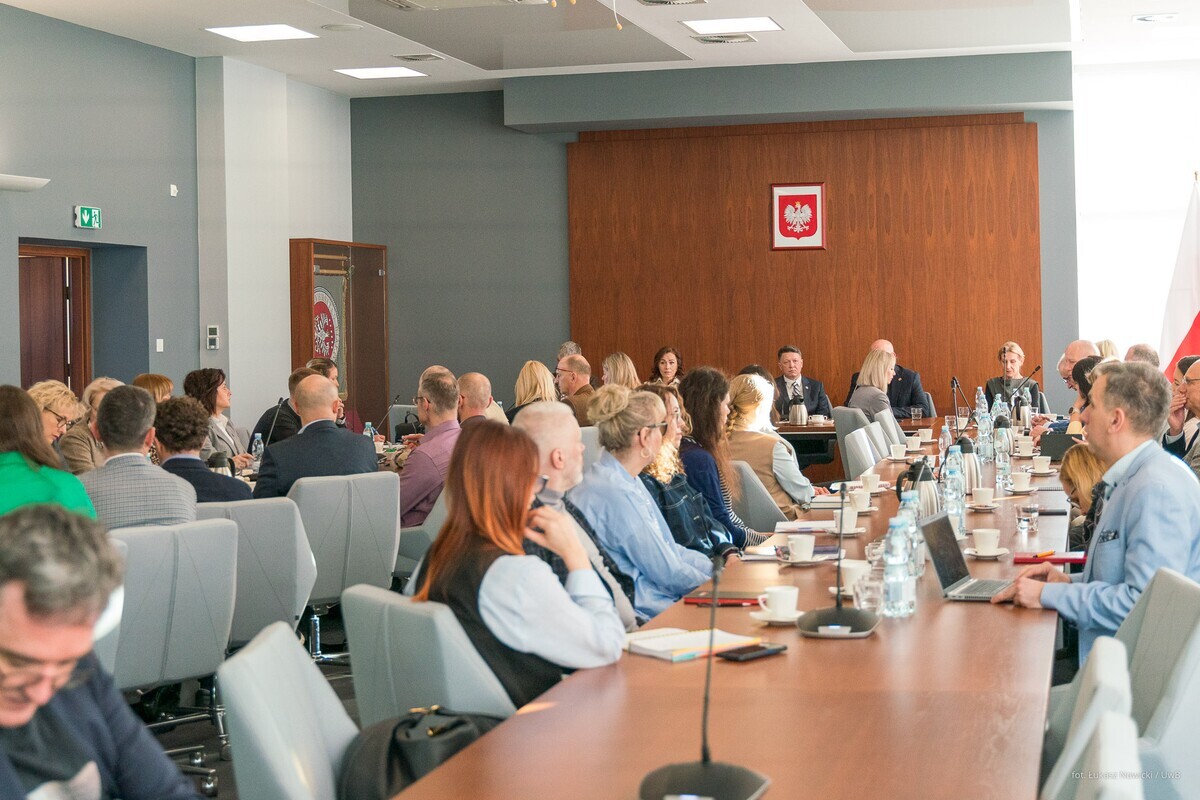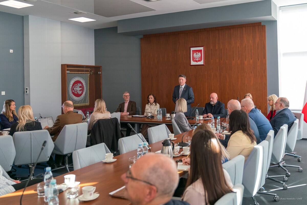 On April 2, 2025, the first meeting of the series "Cooperation at the interface of Science - Entrepreneurs - Local Government" was held at the Rector's Office of the University of Białystok as part of the Rector's Commission for Projects and Development. It was attended by: the Rector's College, representatives of UwB faculties and organizational units, entrepreneurs and the Marshal's Office of the Podlaskie Voivodeship.