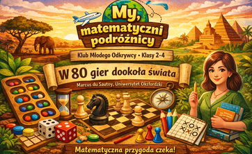 Tym razem wyruszamy w matematyczną podróż inspirowaną książką „W 80 gier dookoła świata" (Marcus du Sautoy, Uniwersytet Oksfordzki). Będzie trochę strategii, trochę logiki i dużo zabawy z grami z różnych stron świata!