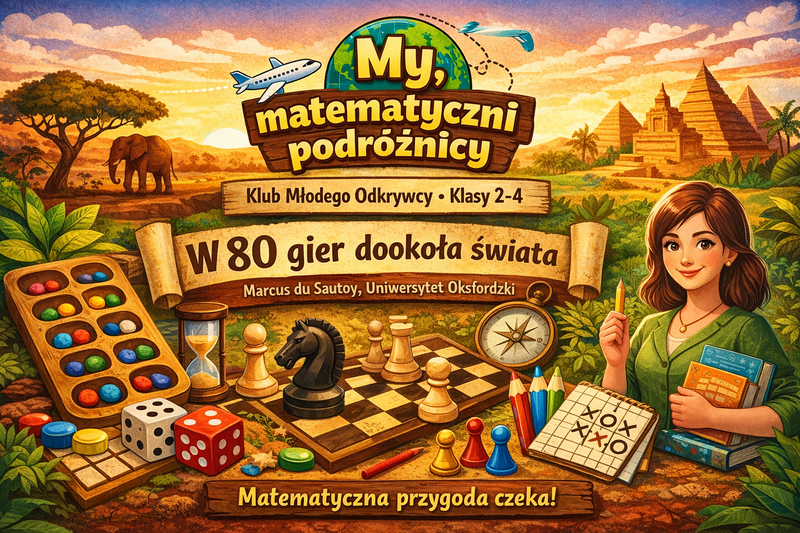 W najbliższą środę 21 stycznia 2026 zapraszamy na kolejne zajęcia Klubu Młodego Odkrywcy dla uczniów klas 2-4 szkoły podstawowej - „My, matematyczni podróżnicy". Zajęcia prowadzi dr Justyna Makowska.