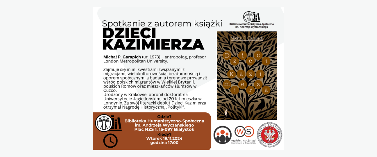 Biblioteka Humanistyczno-Społeczna im. Andrzeja Wyczańskiego zaprasza na spotkanie z Michałem P. Garapichem autorem książki: Dzieci Kazimierza