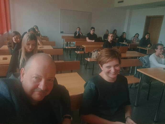 Dr Marta Kuklo i dr Arkadiusz Bieliński z uczniami liceów ogólnokształcących z Białegostoku.