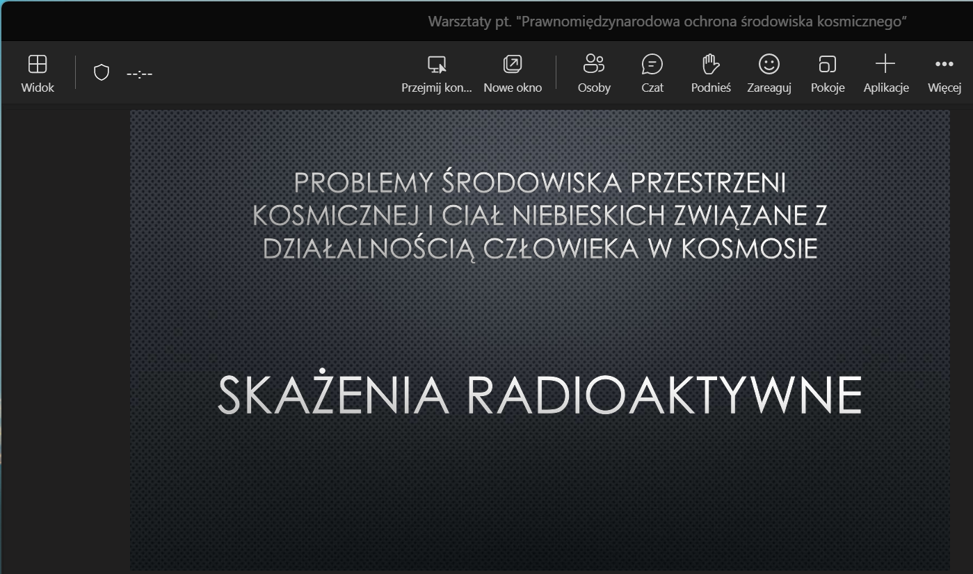 Problemy środowiska przestrzeni kosmicznej i ciał niebieskich związane z działalnością człowieka w kosmosie.