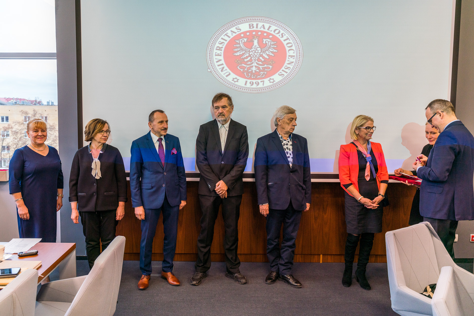 Rektor UwB wręcza medale zasłużonym pracownikom Uniwersytetu w Białymstoku (Fot. UwB)