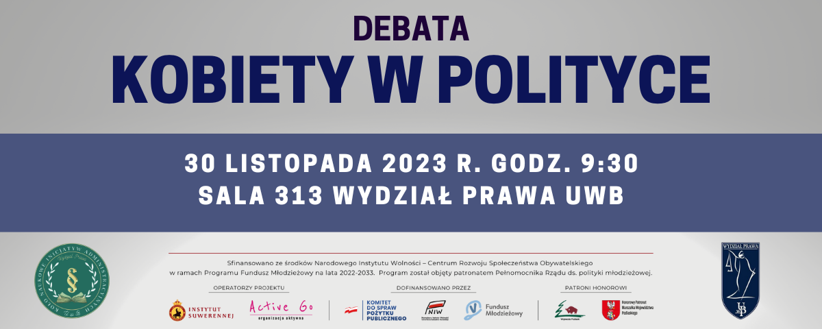 Debata ,,Kobiety w Polityce’’, 30 listopada 2023 roku godz. 9:30, sala 313 Wydział Prawa UwB
