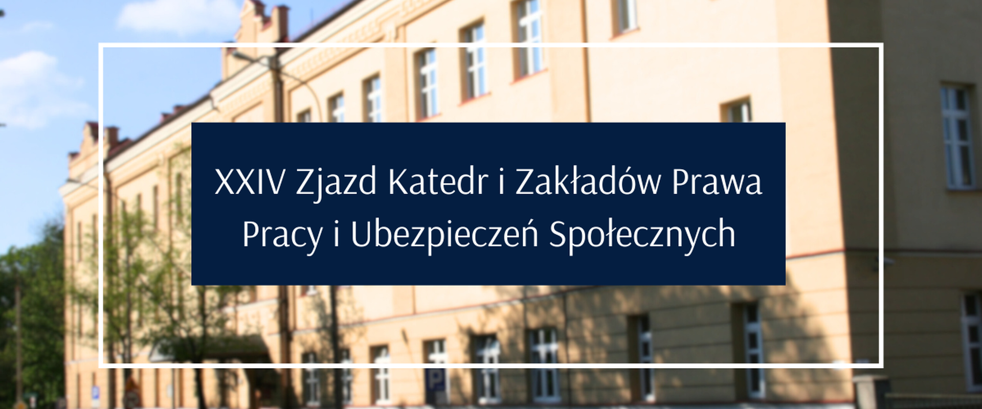 tekst w ramce a za nim widok budynku Wydziału Prawa