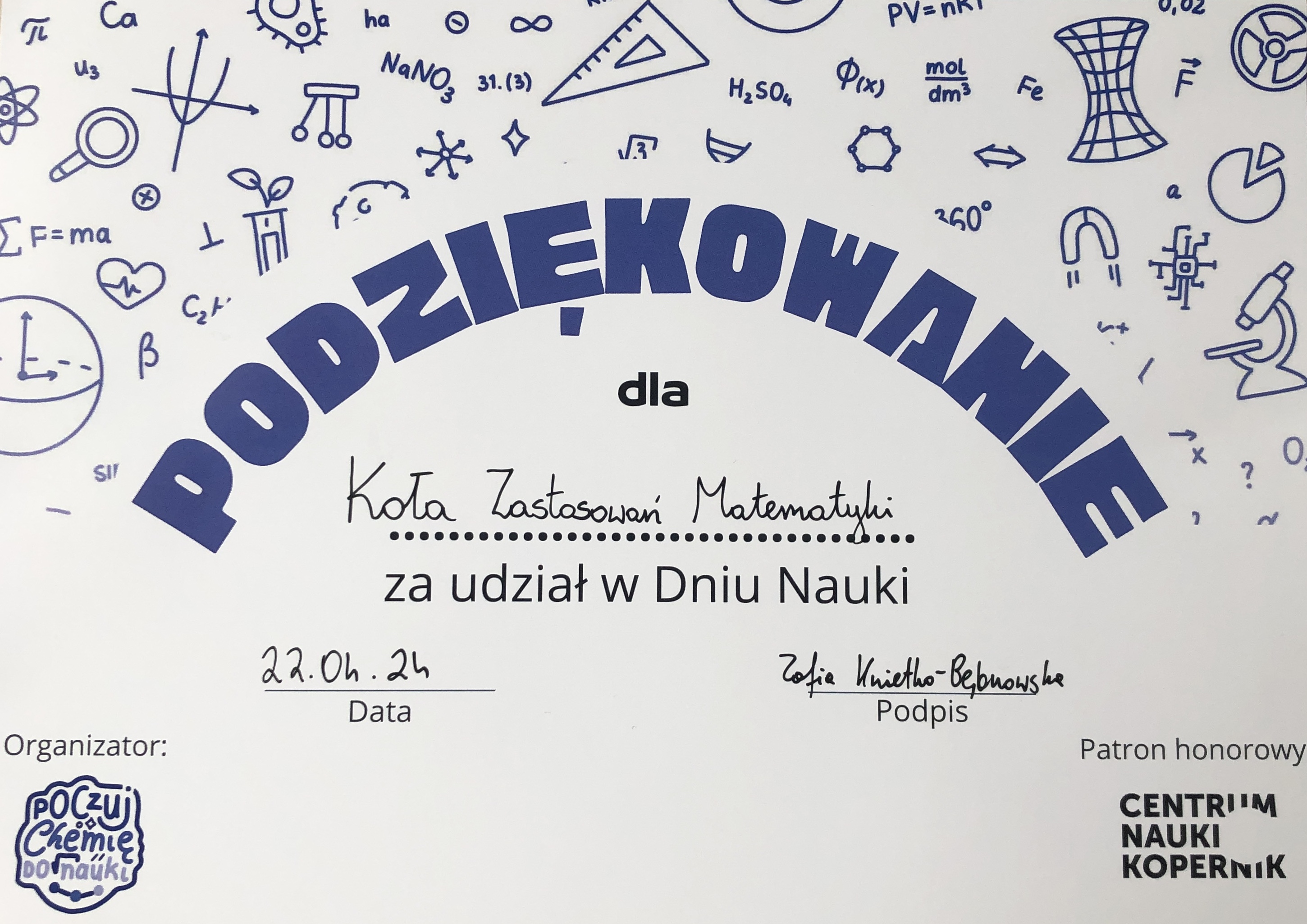 Podziękowania za Dni Nauki w III Liceum Ogólnokształcącym w Białymstoku