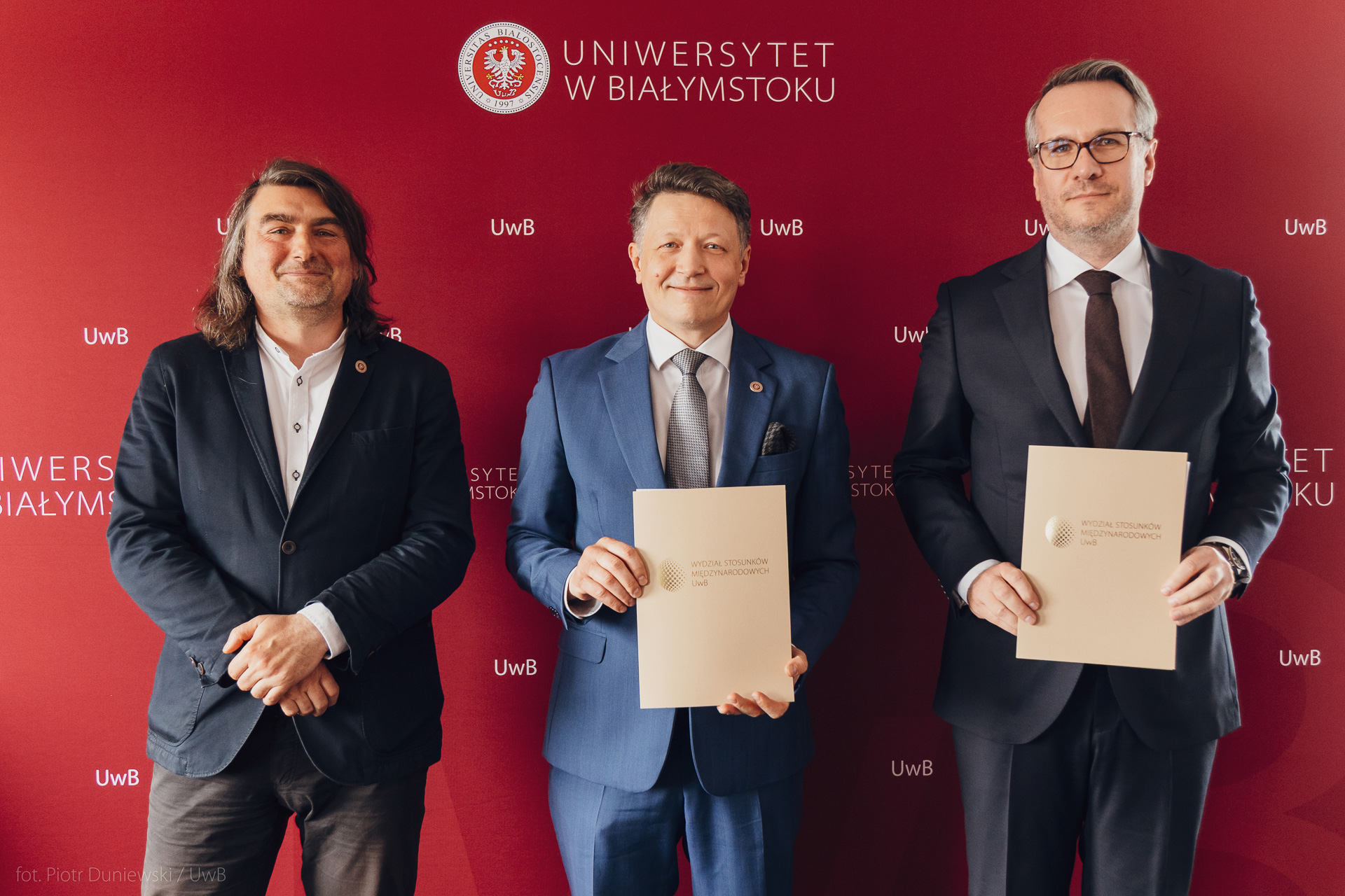 prof. Adam Bartnicki, prof. Mariusz Popławski i Paweł Prus